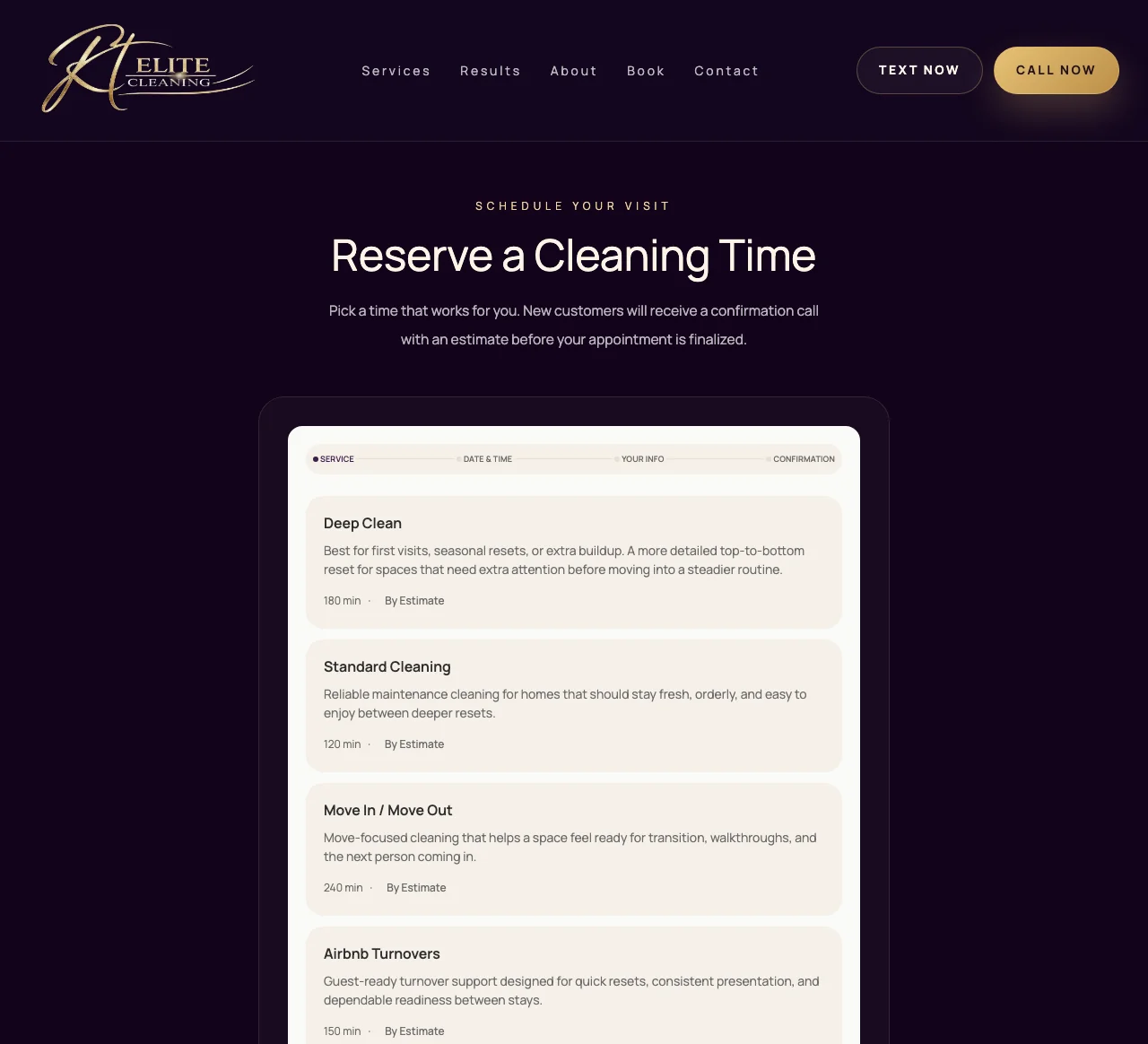 iQ Booking on rtelitecleaning.com — fully branded